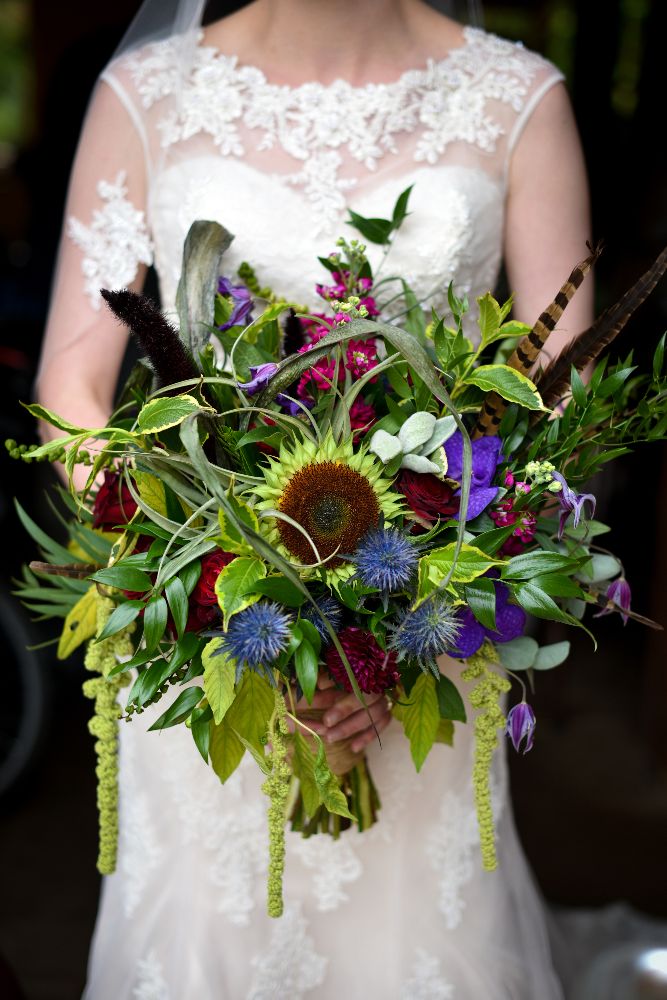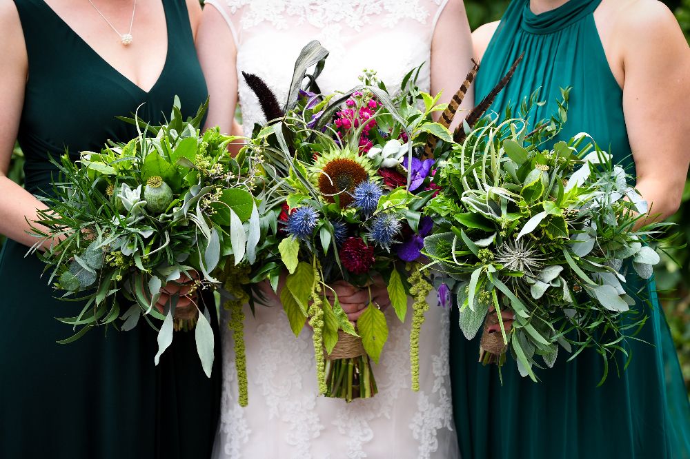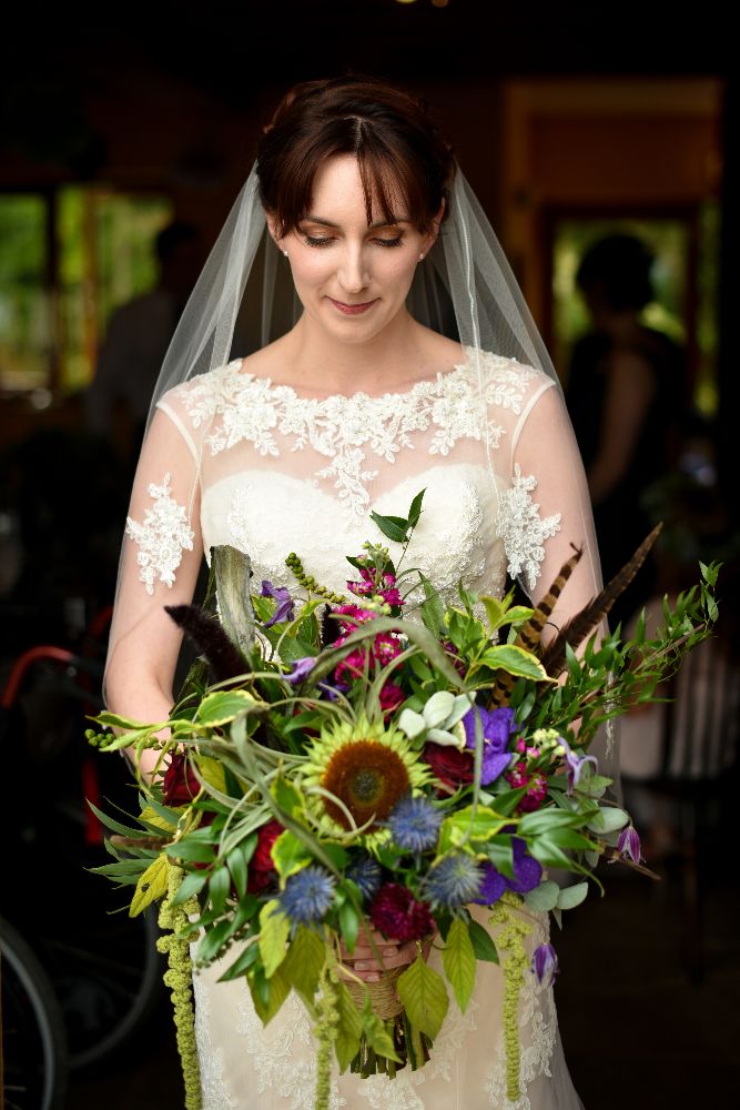 Sam and Kate tied the knot on their families Worcestershire Farm. The couple wanted to create an enchanted woodland look with their flowers - both outside in the woodland clearing where they held their ceremony and inside the marquee where they held their reception.
