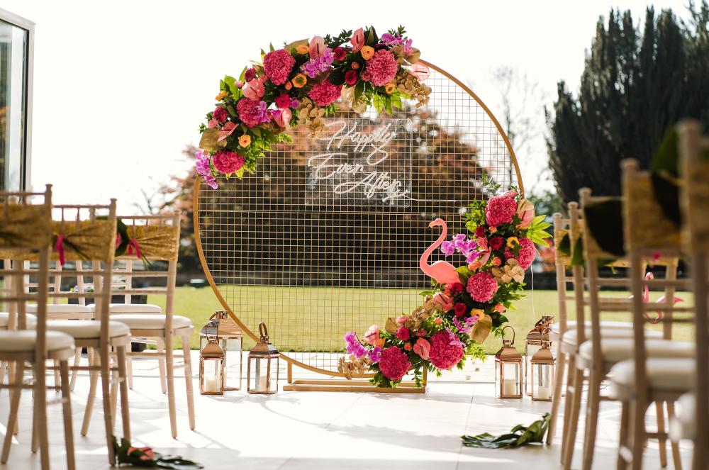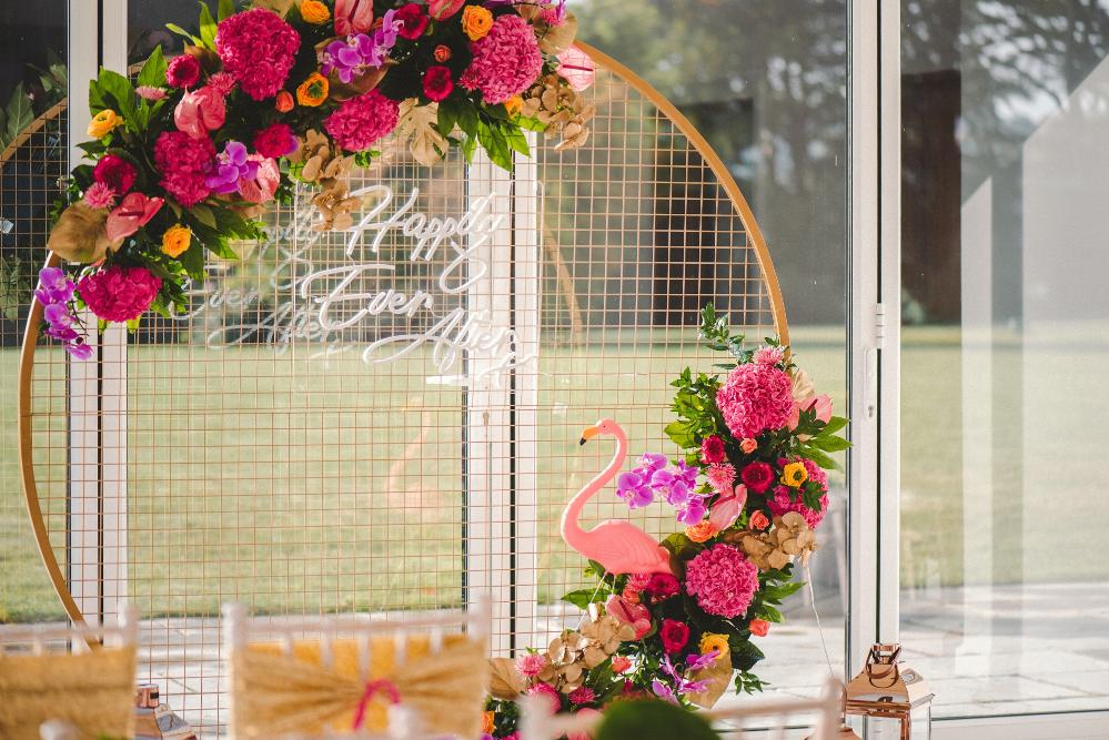 Click here to see this shoot in Brides Magazine:- https://www.bridemagazine.co.uk/articles/tropical-shoot-with-flamingos-worcestershire