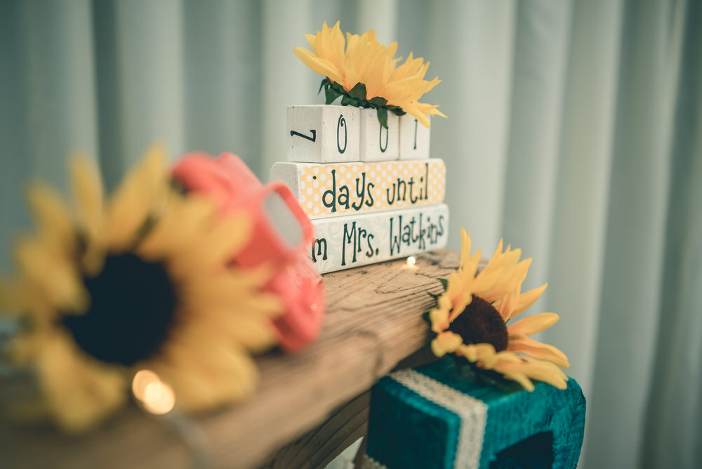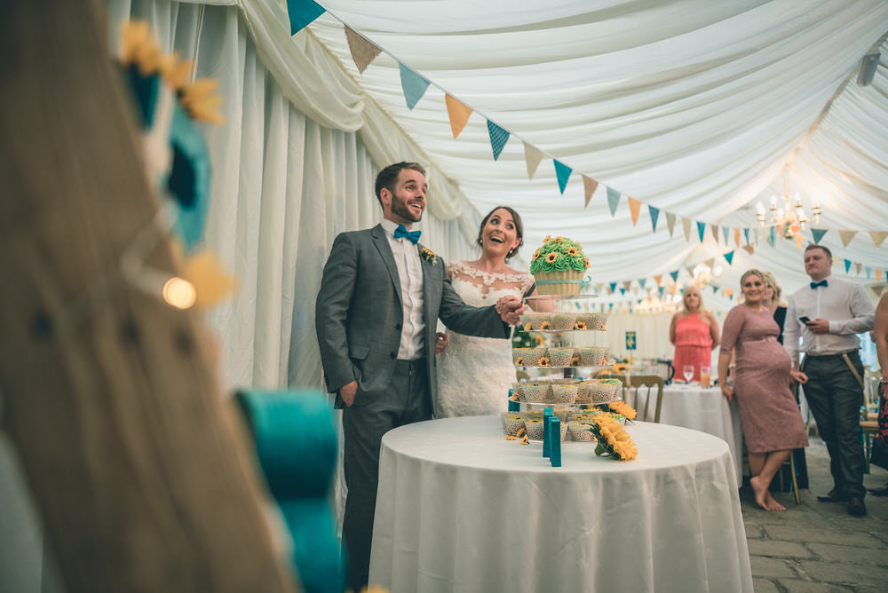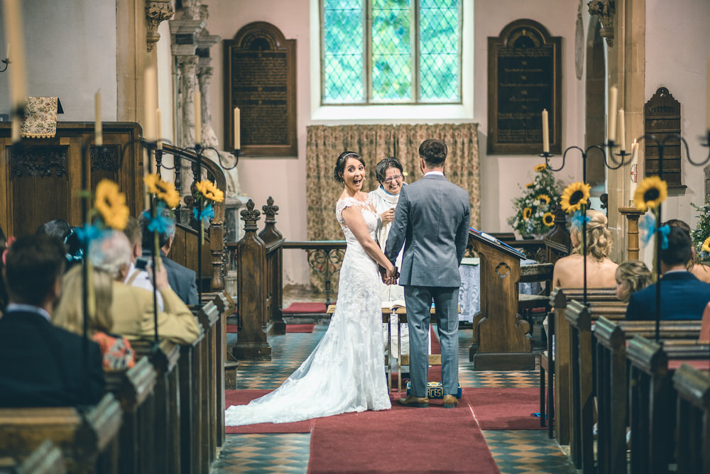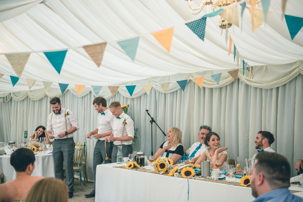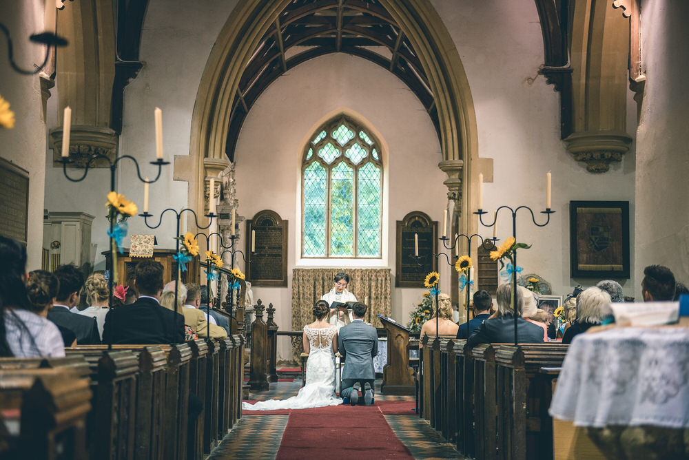 Rather than having formal table centres for their wedding breakfast, FloralRoundabout adorned piles of vintage books with sunflowers creating a very personal decoration for the table - a lovely idea!