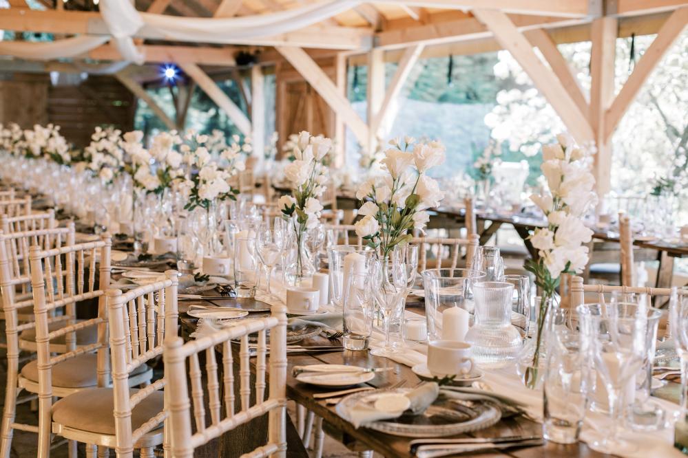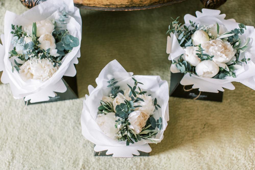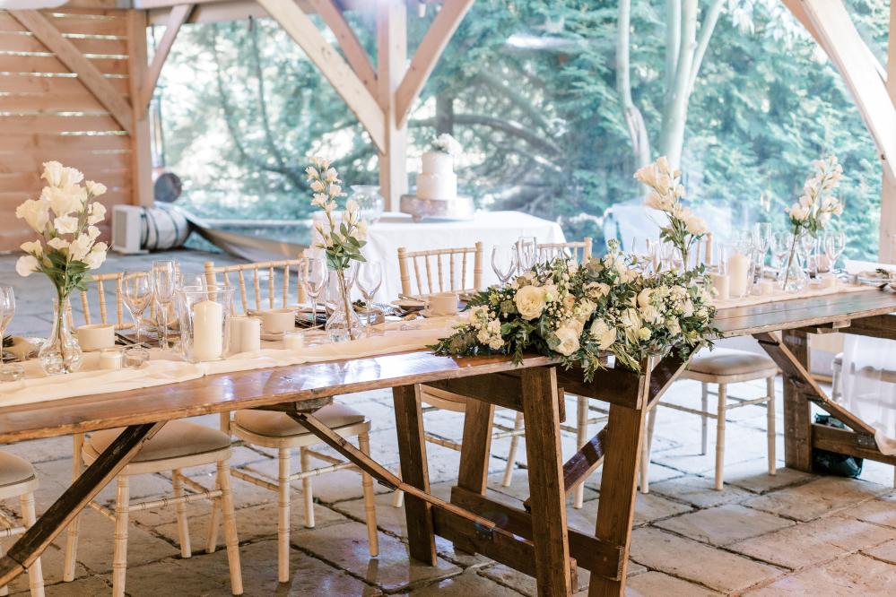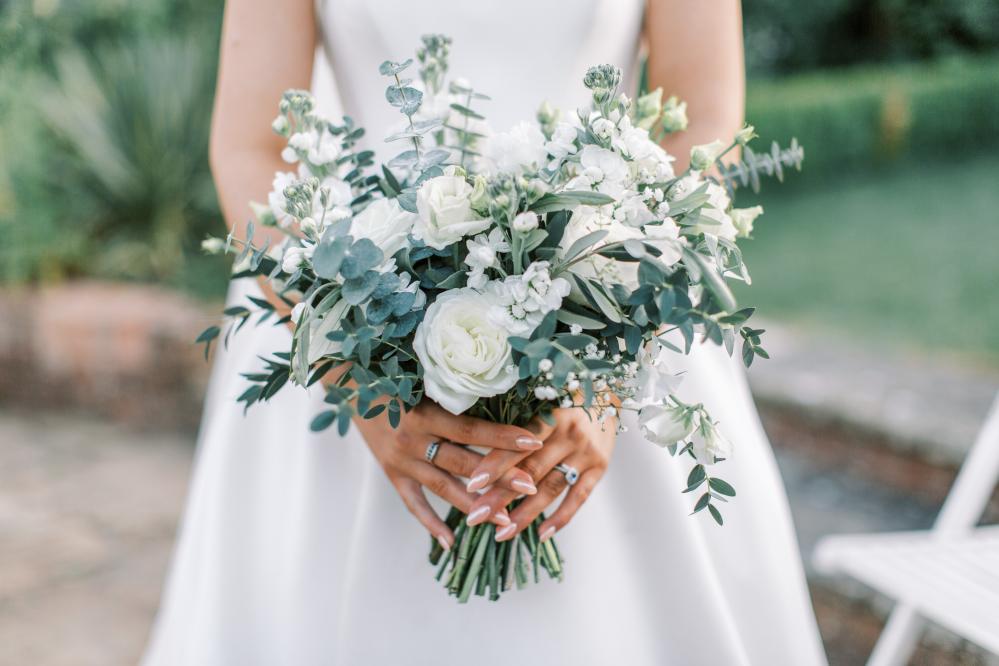A timeless colour palette of ivory and sage to compliment an elegant day at Birtsmorton Court.