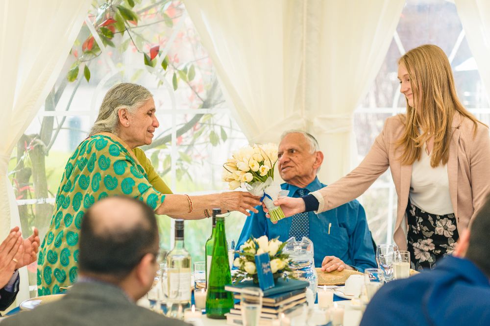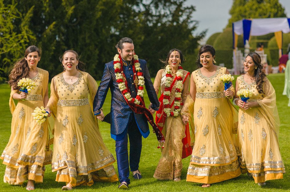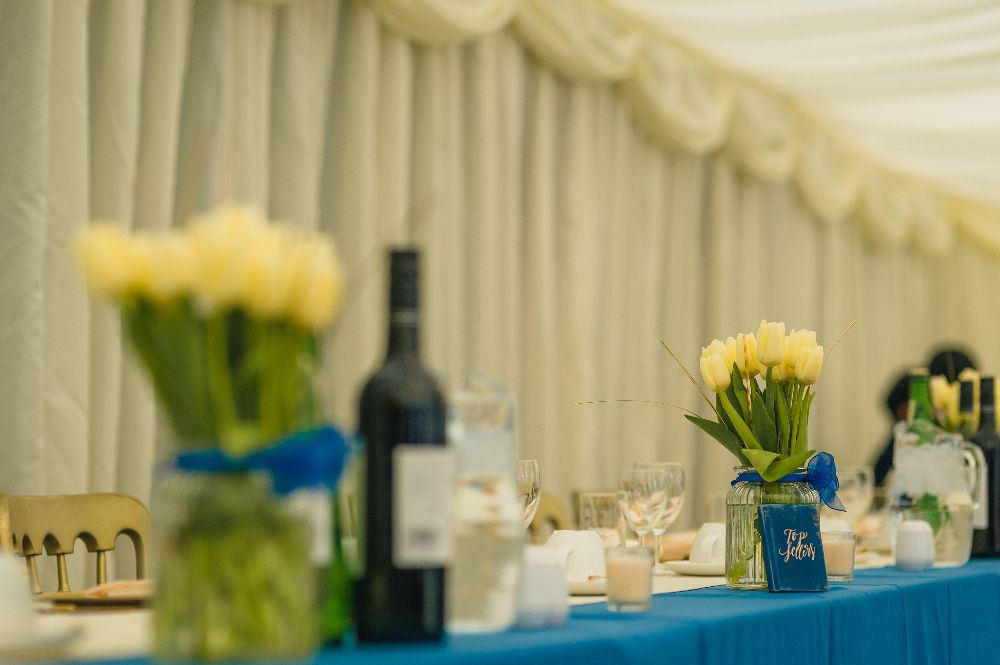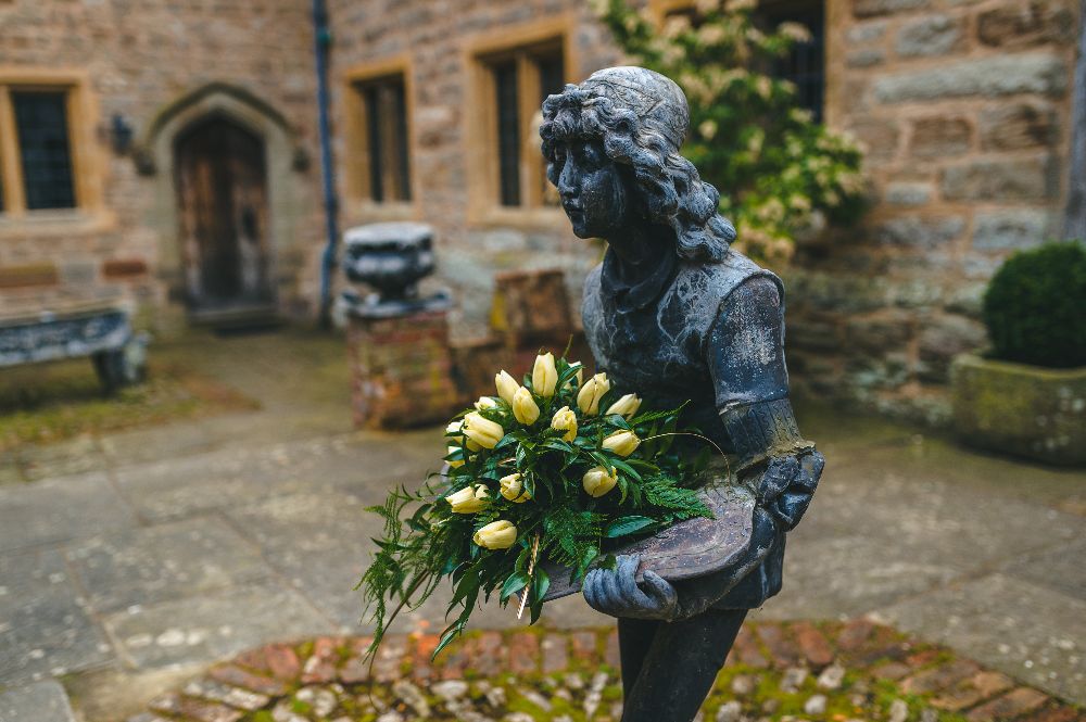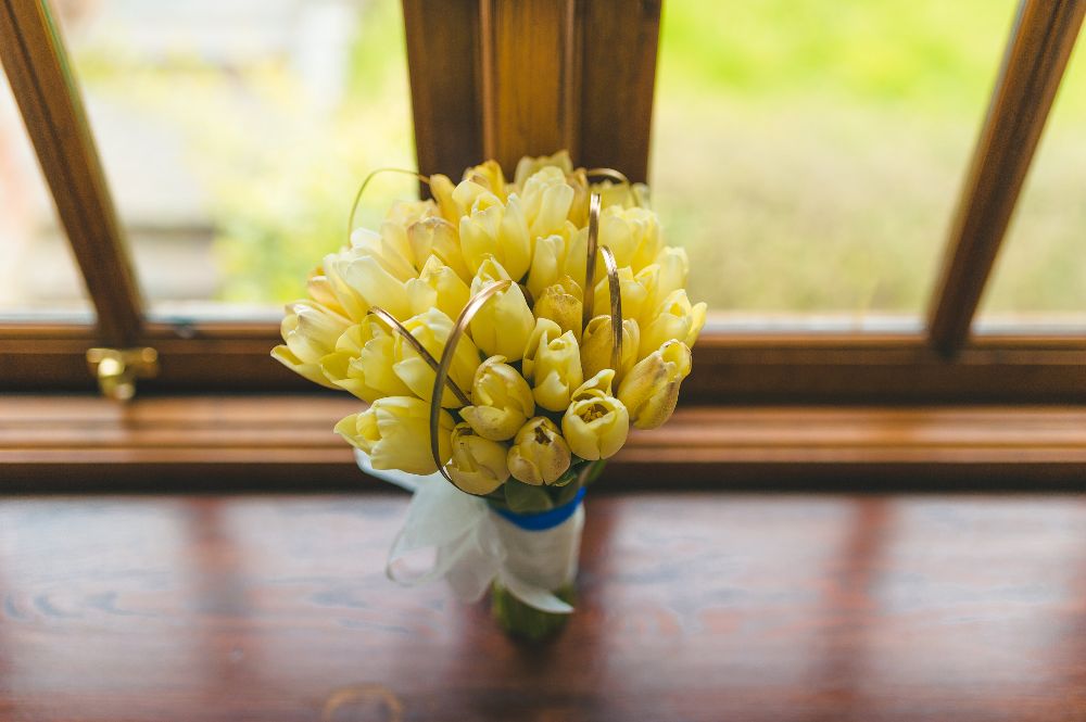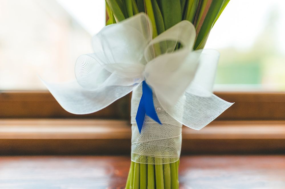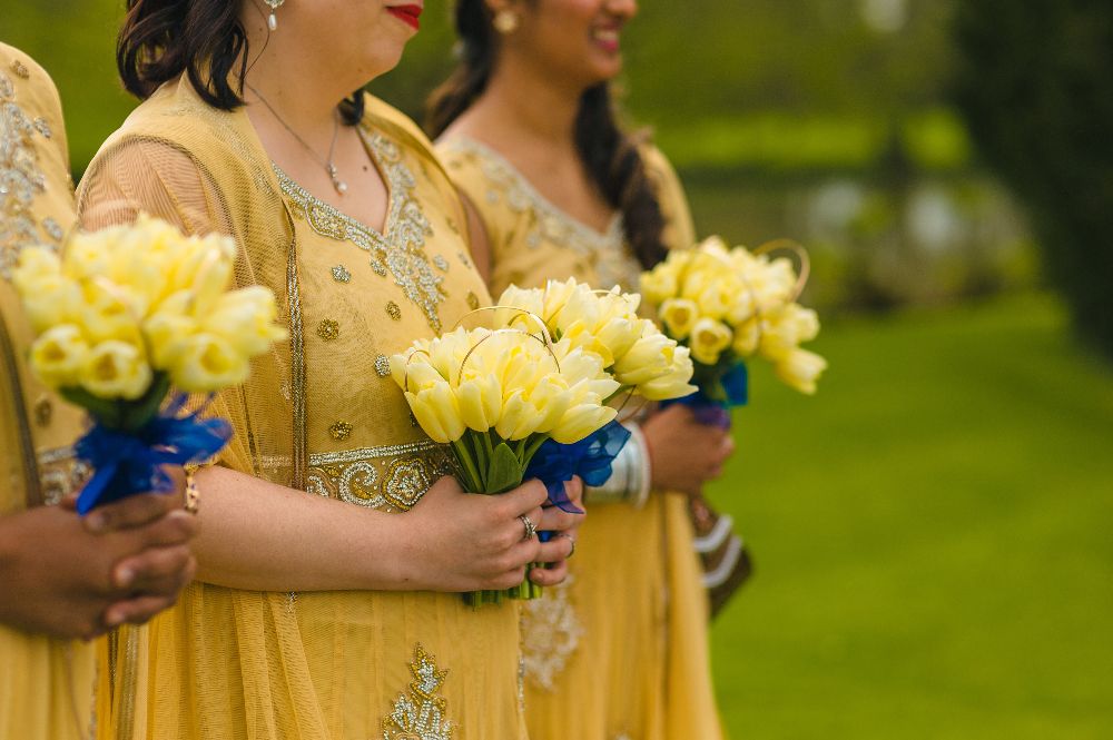 Sheena wanted flowers that would work well at both her white wedding and her Indian wedding, when she married Lee at Birtsmorton Court last summer. She chose a neutral cream and gold colour scheme for the flowers, using cream tulips throughout the day. These looked fabulous with both the colbalt blue and the gold of her bridesmaids outfits.