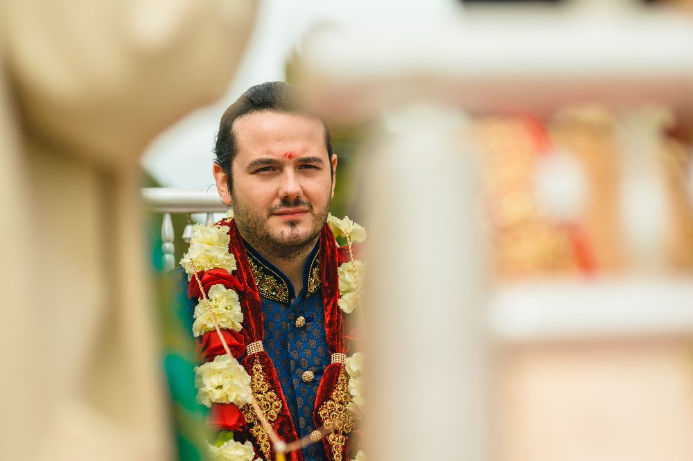 The only colour used for the flowers was the bright red of the beautiful Naomi Roses which were used for the couple's varmala.