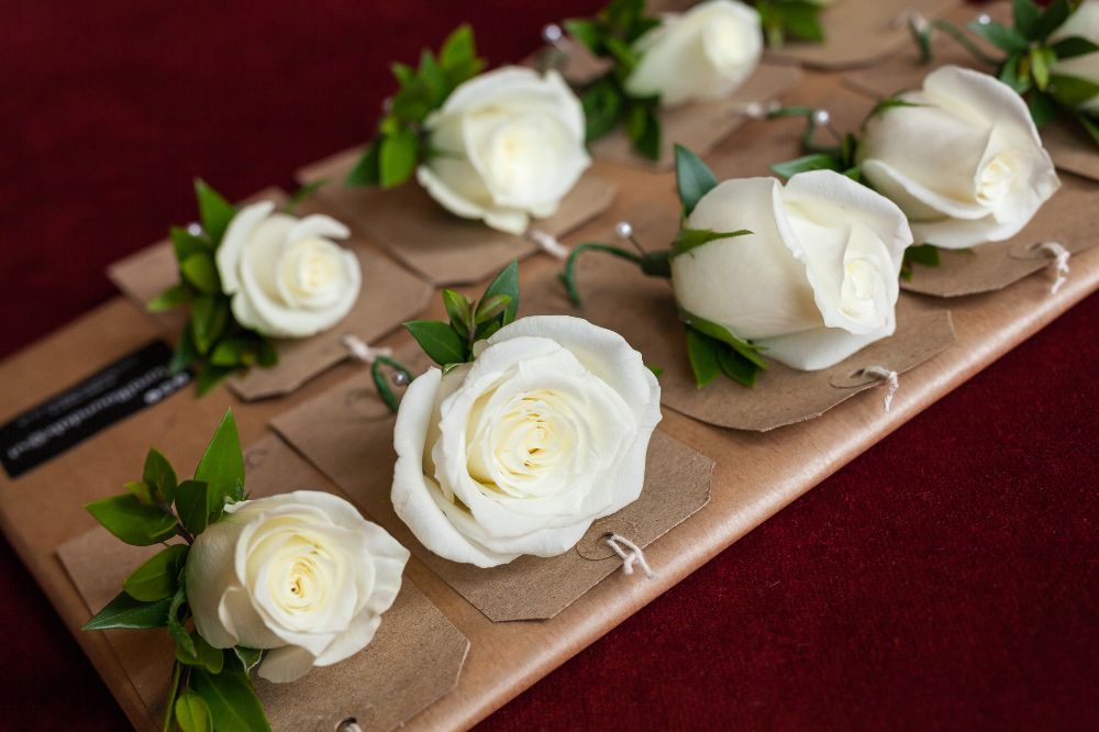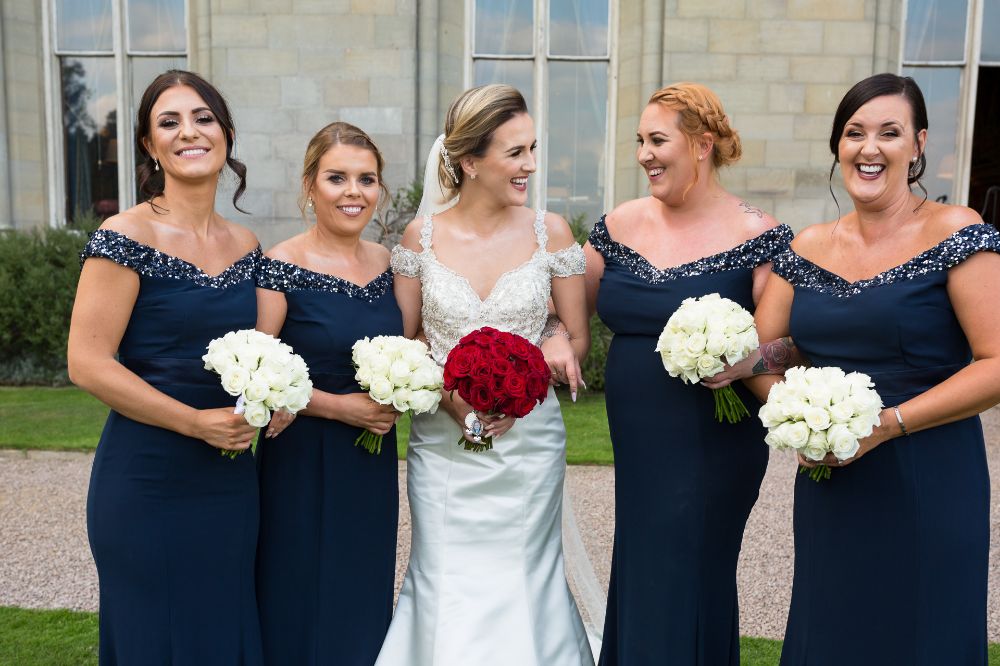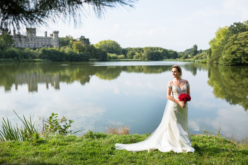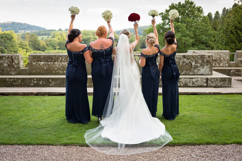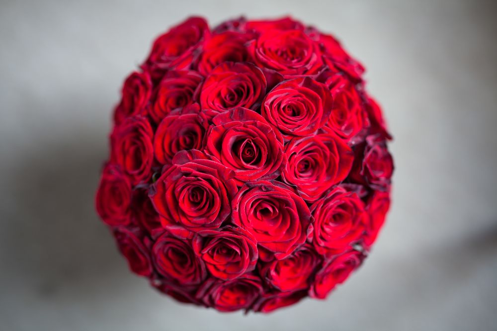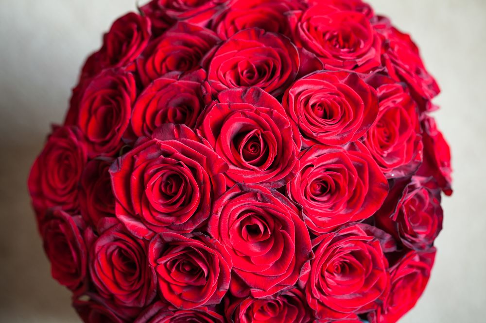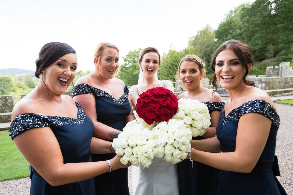 While initially Charlotte had thought she would carry a neat bouquet of ivory roses, to match her bridesmaids, a last minute change of heart led her to the gorgeously contrasting domed bouquet of lush and velvety red Naomi roses.