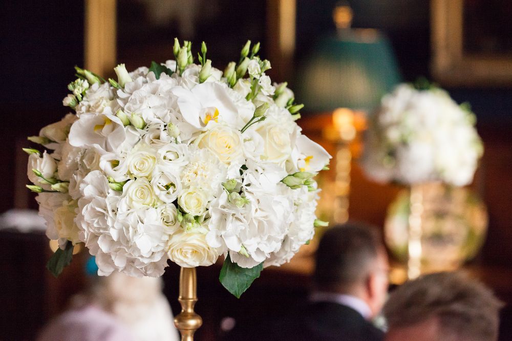 She had a clear idea of how her flowers would look - she wanted a classic combination of roses, orchids and hydrangeas in shades of white and ivory.