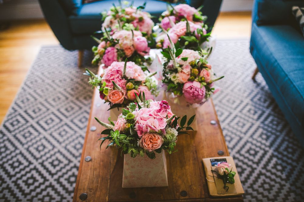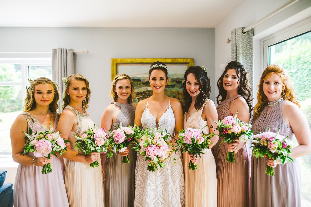 She had a vision but was relaxed about specific blooms as long as the main palette was pink. We used peony (perfect for their early june wedding), hydrangea, roses, stocks, delphiniums and dahlia to create this lux look.