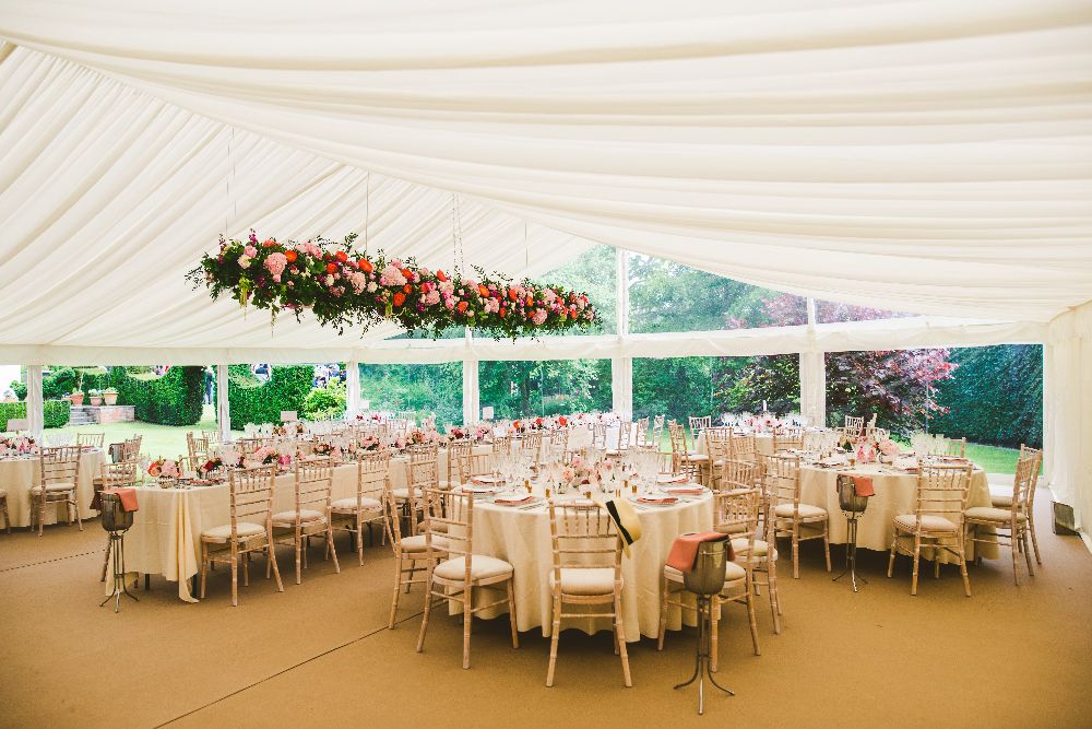 We don't usually blow our own trumpet - but how GORGEOUS is the hanging floral installation in the marquee (AKA The Floral Caterpillar!)?